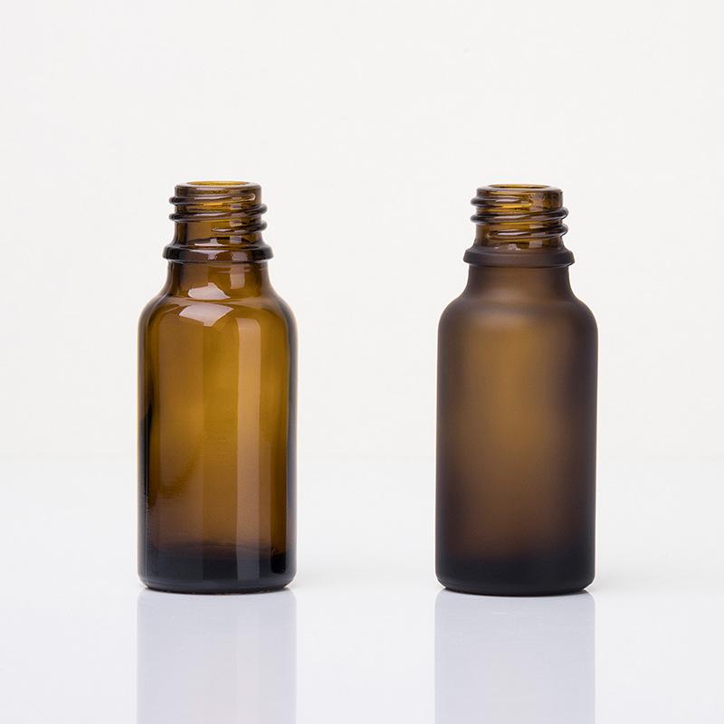 18/410Botella redonda Boston de vidrio ámbar de 20 ml (0,7 oz) para aceites esenciales