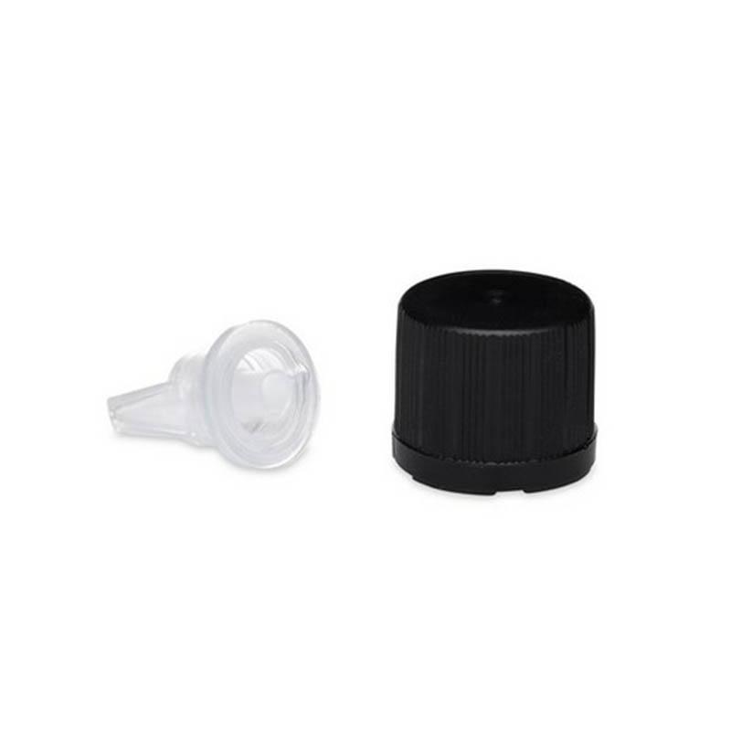 Incluye una tapa negra a prueba de manipulaciones con tapón gotero.