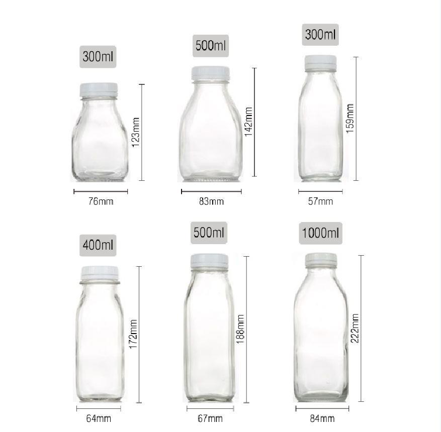 Nuestro Botella de vidrio cuadrada de 14 oz con tapas a prueba de manipulaciones duradero, saludable, libre de BPA, Es perfecto para almacenar leche, jugos, batidos y batidos de proteínas. La forma cuadrada realza el atractivo de los productos.