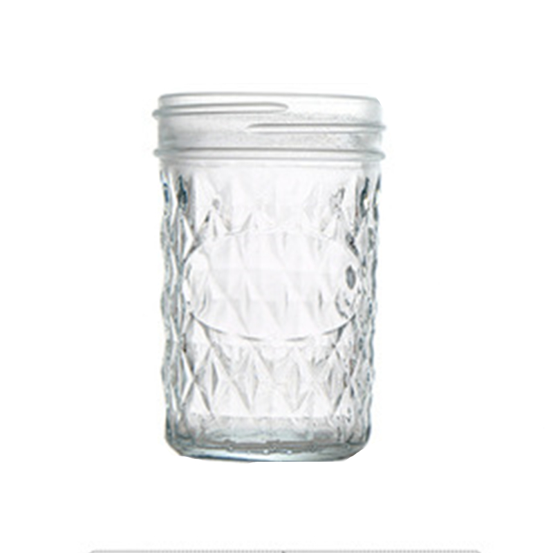 Tapa de hojalata Tarro de cristal Botella de caviar de diamante, botella de miel, botella de té con leche Botella de pastel Estas botellas de vidrio transparente para bebidas pueden soportar temperaturas altas y bajas, lo que las hace utilizables para el llenado en caliente o el prensado en frío de bebidas vegetales y jugos.