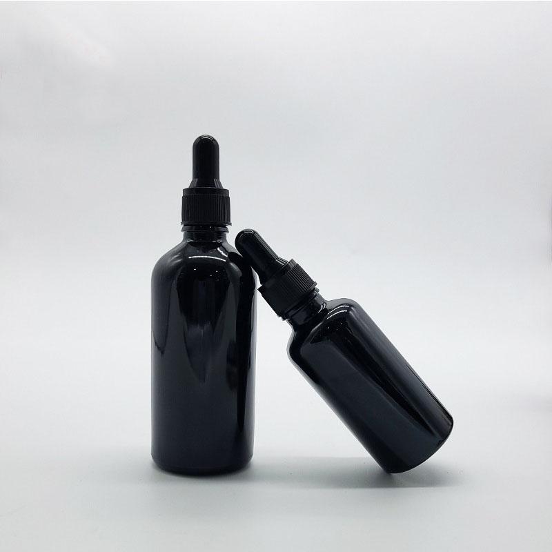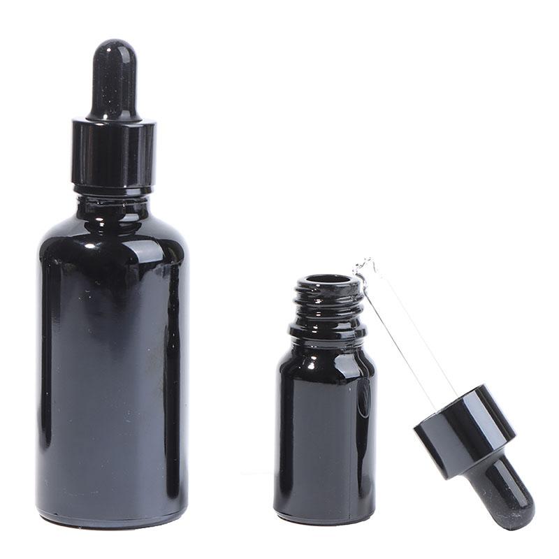 18/410Botellas de vidrio negro mate de 30 ml con gotero negro a prueba de niños