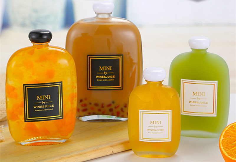 Amplia gama de usos: las botellas de bebidas de vidrio engrosado se dividen en botellas de jugo, el cuerpo de la botella es transparente y brillante, adecuado para el subenvasado de bebidas de jugo, café, bebidas frías, etc.