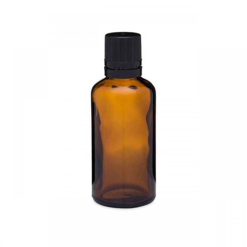 Botellas de aceite esencial de vidrio ámbar de 50 ml con tapa negra