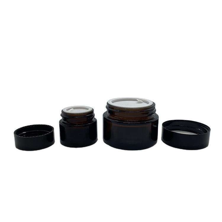 Tarro de crema facial de vidrio ámbar de 5 g con tapa de ABS y almohadilla de PP
