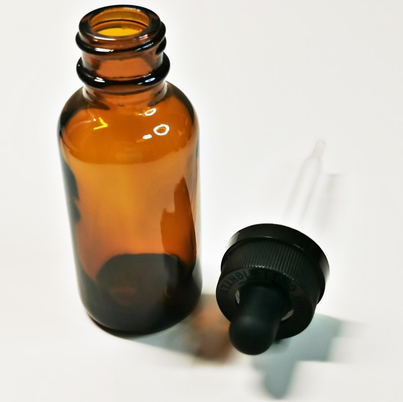 Frascos de vidrio ámbar Boston con pipetas CRC a prueba de niños