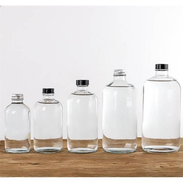Nuestra botella de vidrio transparente para jugo es perfecta para todas las bebidas sin gas. Esta botella alta y redonda ofrece amplio espacio para etiquetar.