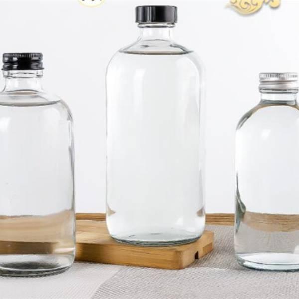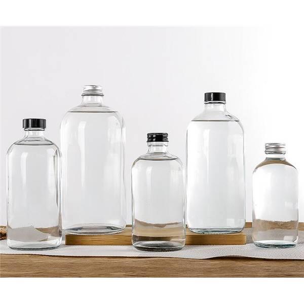 Estas botellas de vidrio transparente para bebidas pueden soportar temperaturas altas y bajas, lo que las hace utilizables para el llenado en caliente o el prensado en frío de bebidas vegetales y jugos.