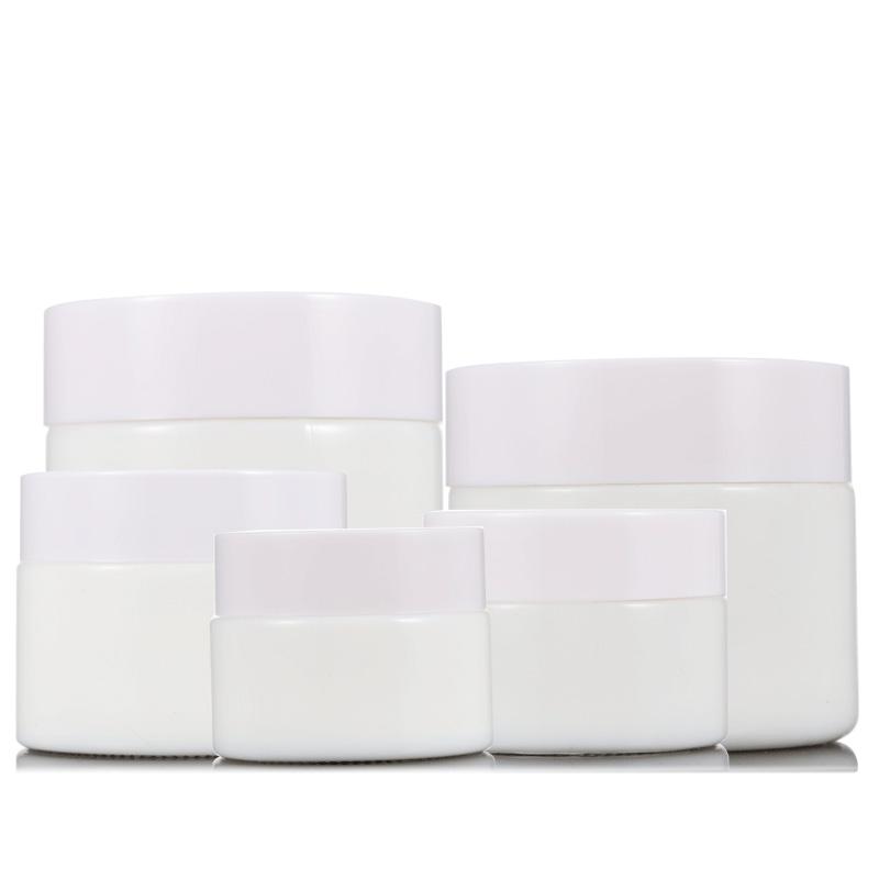 Frasco de vidrio esmerilado blanco personalizado para cosméticos de 20G, 30G, 50G, 110G y 120G, hermosos contenedores de cosméticos de alta gama, ungüentos, ungüentos, especias, condimentos y otros productos para el cuidado de la piel.
